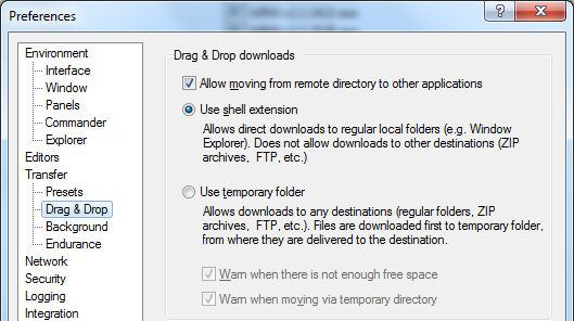 Does anybody how to activate the dragging of files from local computer to remote server? On my old computer it did work just fine.