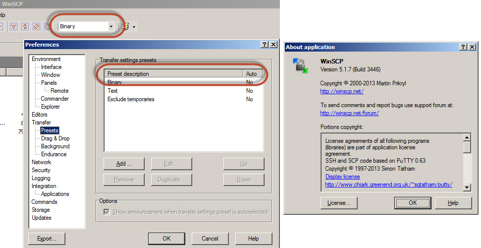 Need help in having Binary as the default transfer mode, every time I close and open WinScp, default is the value for Select transfer settings preset.
