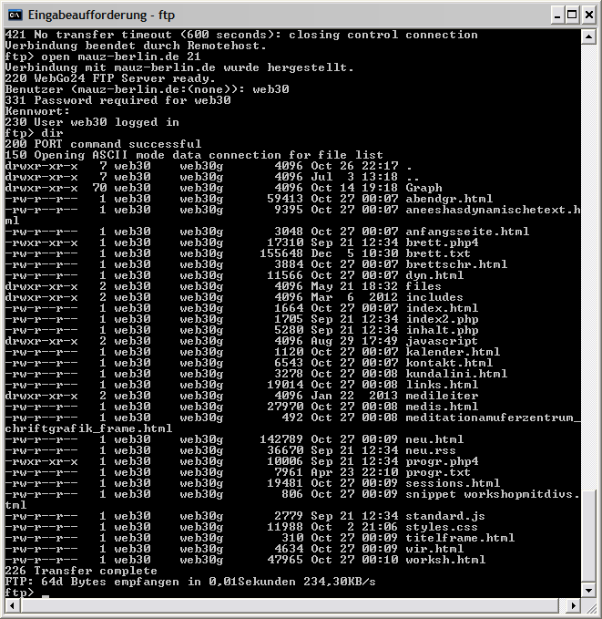 I attached a screenshot of the WinSCP screen and a command-line-FTP-dir-screen.