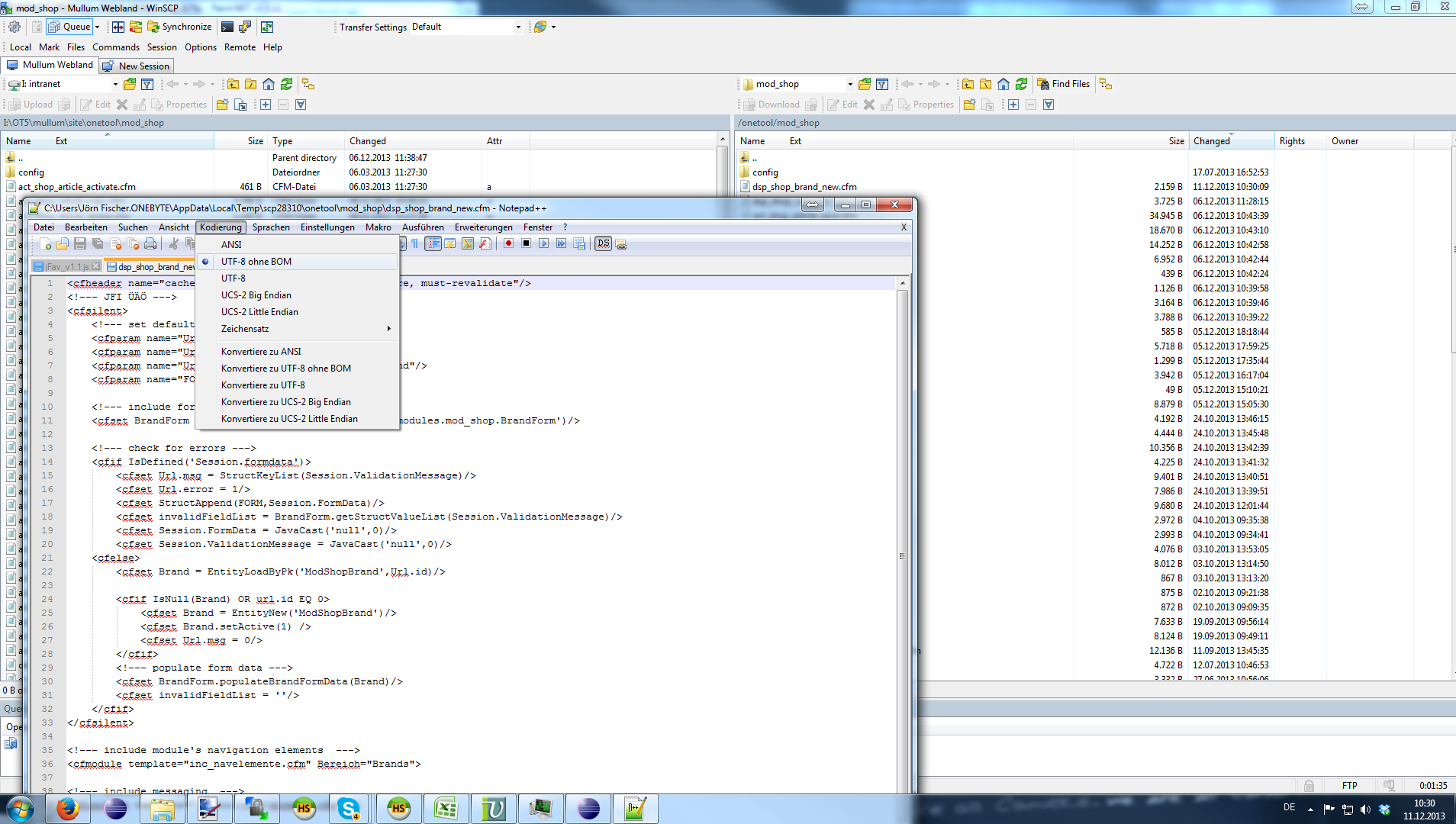 It would be totally the same, if I do the process of changing a file locally and transfer the file with WINSCP! The error has to be on the transfer!!