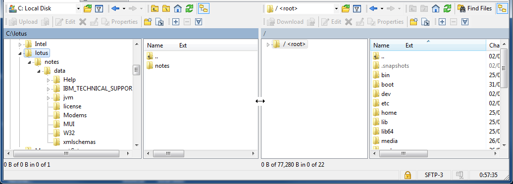 (3) In the remote panel, show the directory tree (Ctrl+Alt+T). Move the mouse pointer over the divider between the remote directory tree panel and remote files panel. A horizontal resize cursor should be displayed, not a vertical resize cursor.