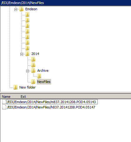// ME - NewFiles has two files in it, in the File pane they show as "/EDI/Emdeon/2014/NewFiles/h837.20141211.POD4.05173" and not as just "h837.20141211.POD4.05173"