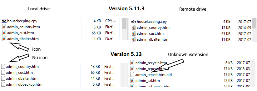 After I upgraded to V5.13 I noticed that the files on the local drive no longer show the default icon for the file type, but it does on the remote drive.