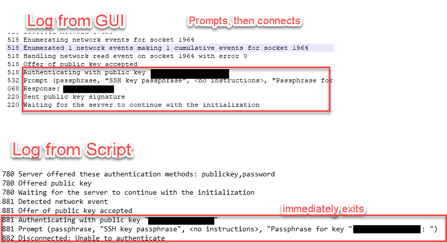 Prompt for passphrase: works in GUI, cannot get to work in Script - SOLVED