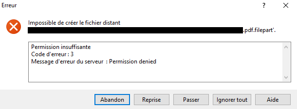 At each time I got a Permission Denied because of a .filepart extension as you can see on the picture.