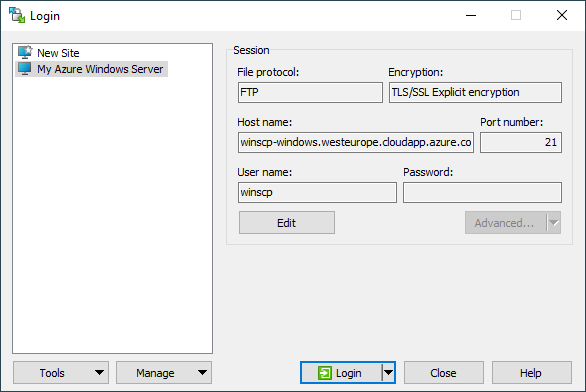 With WinSCP you can easily upload and manage files on your Microsoft Azure instance/service over SFTP protocol or FTPS protocol.