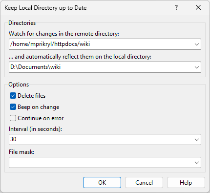 This script periodically synchronizes changes from the remote server to a local directory.