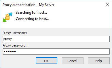 If WinSCP discovers that it needs a proxy username or password and you have not specified them in the configuration, it will prompt for the missing credentials.