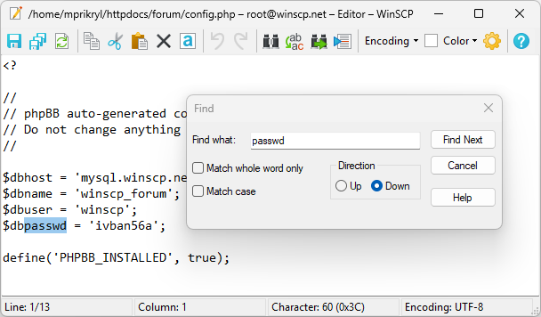 WinSCP has an integrated simple text editor you can use to edit remote or local text files. If you want to use a more complex editor or edit binary files, you need to set up external editor.
