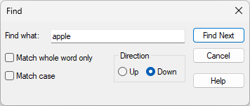 Press button Find next to start searching. If occurence of the string is found, view will be scrolled to reveal the string and the string itself will be highlighted. You can press it repeatedly to search for other occurences.
