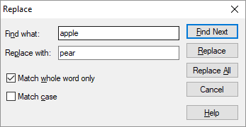 Press button Replace All to replace all occurences of the string. Number of replacements will be shown.