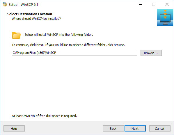 On the Select Destination Location page of the WinSCP Installer, you select where you want WinSCP to be installed.