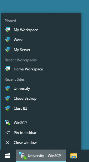 From WinSCP jump list you can open recent sites and workspaces.