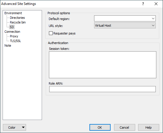 The S3 page on the Advanced Site Settings dialog allows user to configure Amazon S3 protocol specific options.
