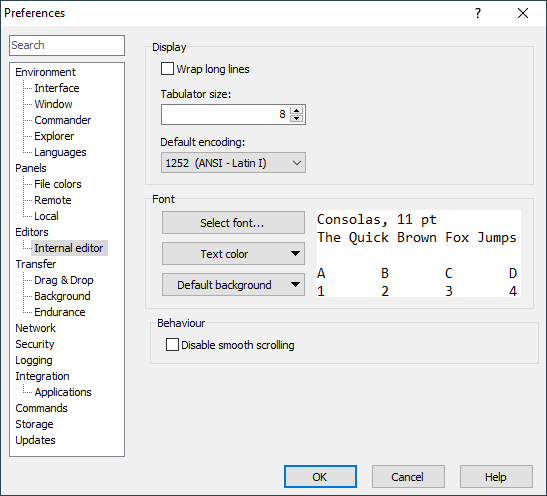 Use Select Font button to select font for an internal editor. The preview on the right will show you what the font looks like.