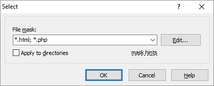 Press Edit button to edit the file mask in File mask dialog. This can be particularly useful, when you want to select files using a file list.
