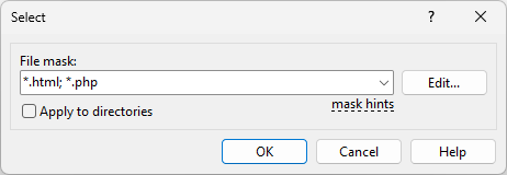 Use the Including directories checkbox to specify, whether file masks match also subdirectories. Directory masks (ending with slash) always match subdirectories.