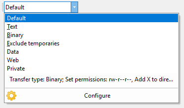 On Transfer Settings toolbar you can override default transfer settings by selecting one of the configured presets. Note that the first option Default represents default transfer settings.