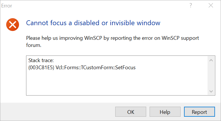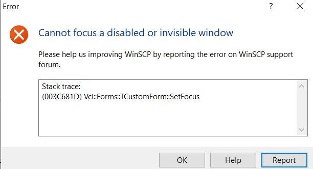 Cannot focus a disabled or invisible window - Vcl::Forms::TCustomForm::SetFocus