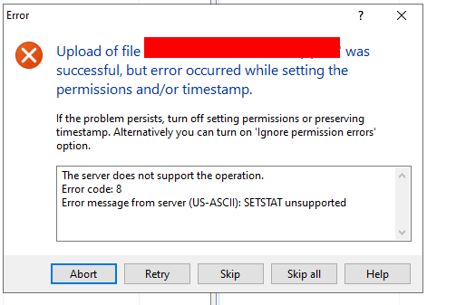 I am able to upload a document to FTP server via WinSCP GUI, with warnings, however I cannot do this via simple script