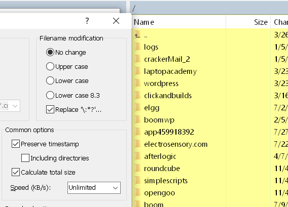 When trying to download a very large directory structures and huge amounts of files, it goes to 50% of calculating directory size and then it just keeps going through the directories one by one, which takes around 2-3 seconds per directory. This it taking forever as there are literally tens of thousands of directories. (can't tell how many there are, but its still running after having been on all night, still at 50% and still calculating directories)