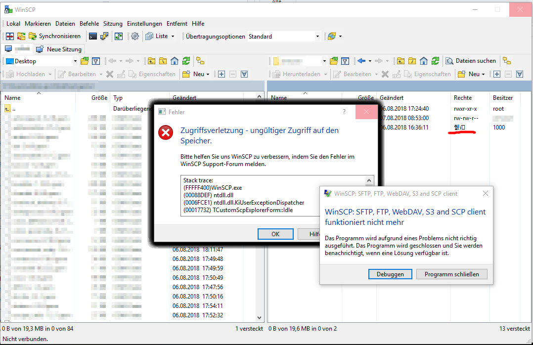 Invalid access to memory - WinSCP.exe