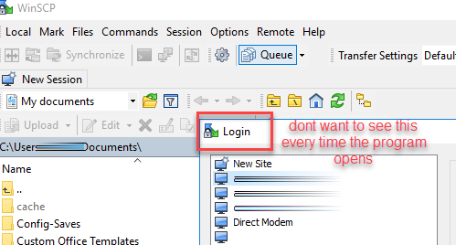 If my sites won't connect for some reason, router or host down I don't want to have to attempt to connect to an unavailable site (and fail) just to start WinSCP.