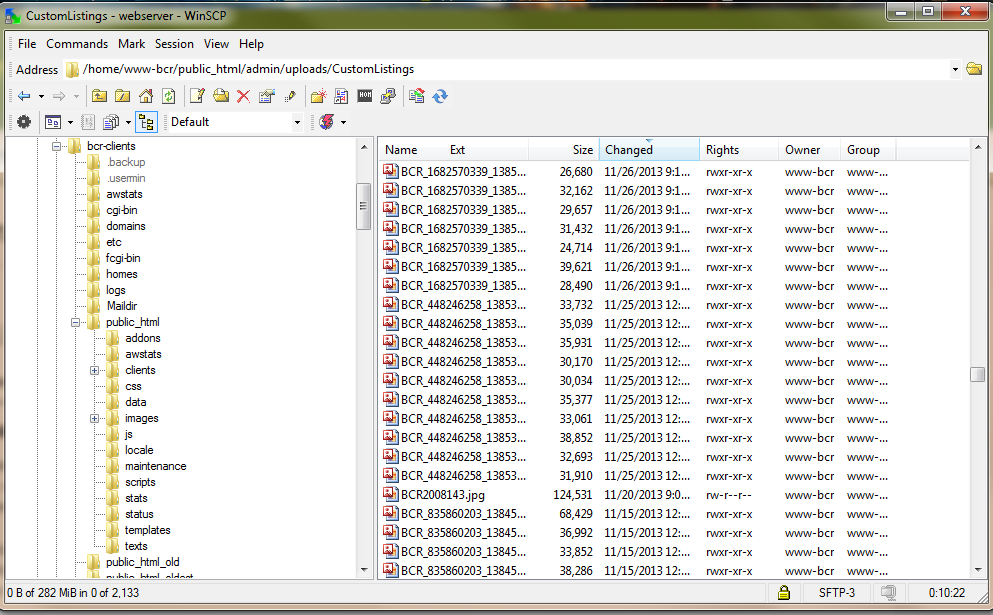 /home/www-bcr/public_html/admin/uploads/CustomListing while in Windows 8 you are in folder /root/home/bcr-clients/public_html.