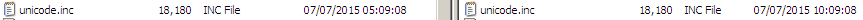 So, for the file in question (unicode.inc, which appears in WinSCP as listed for transfer as being newer when it isn't, it's the same file):