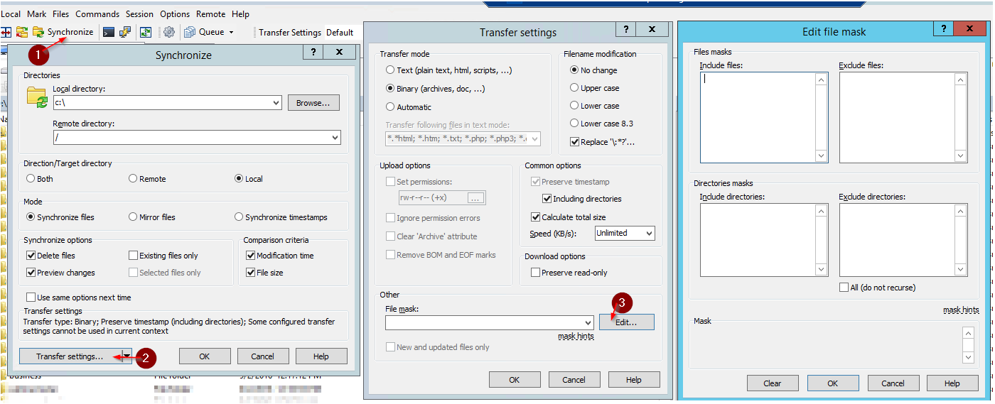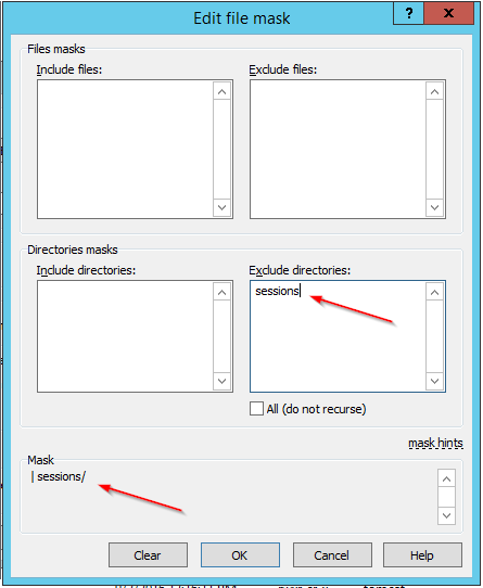 I need to copy the whole web site back to my PC, with exclusion of couple folders that are 'sessions' on a database. If I try to sync everything, include that