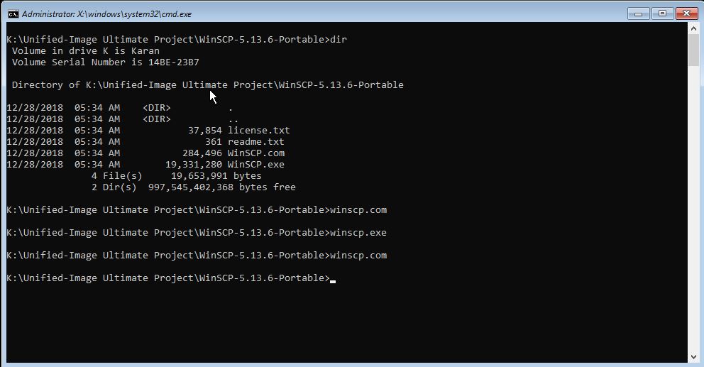 WINSCP Portable : WINSCP.COM does not work in Windows PE