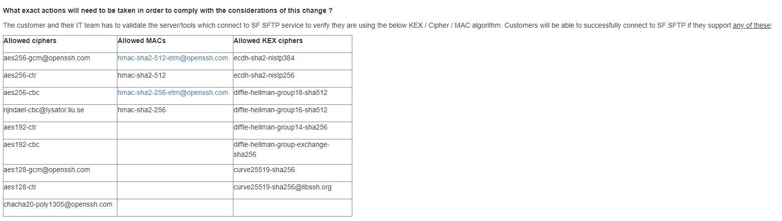 So would anyone know if WinSCP Client version 5.9.6 (Build 7601) will be able to support this and still be able to connect to SAP's SFTP server? If not then what would be the best course of action? do I need to specifically change a configuration in the client or download the latest WinSCP client version or something else?