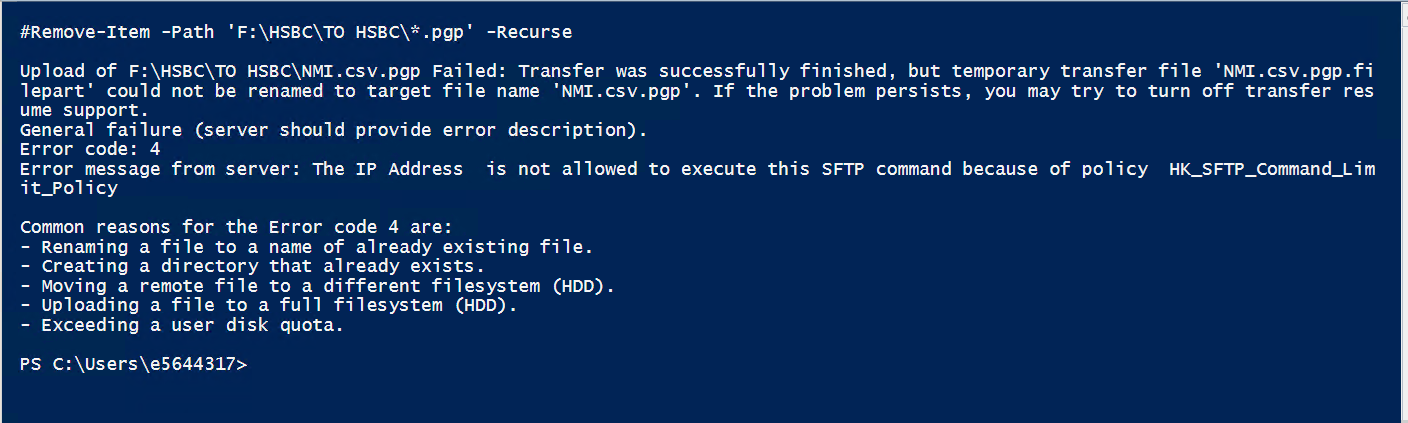 Write-Host "Upload of $($transfer.FileName) Failed: $($transfer.Error.Message)"