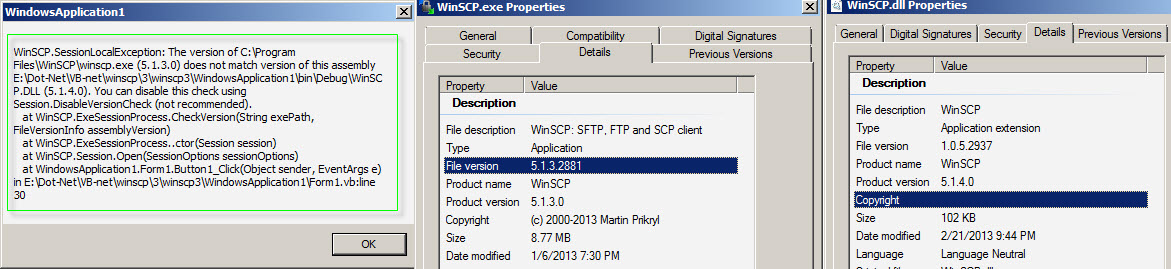 vb.net program failing due to a version issue on the winscp.dll (version 1.0.5.2937, product - 5.1.4.0) and my winscp.exe is 5.1.3.2881