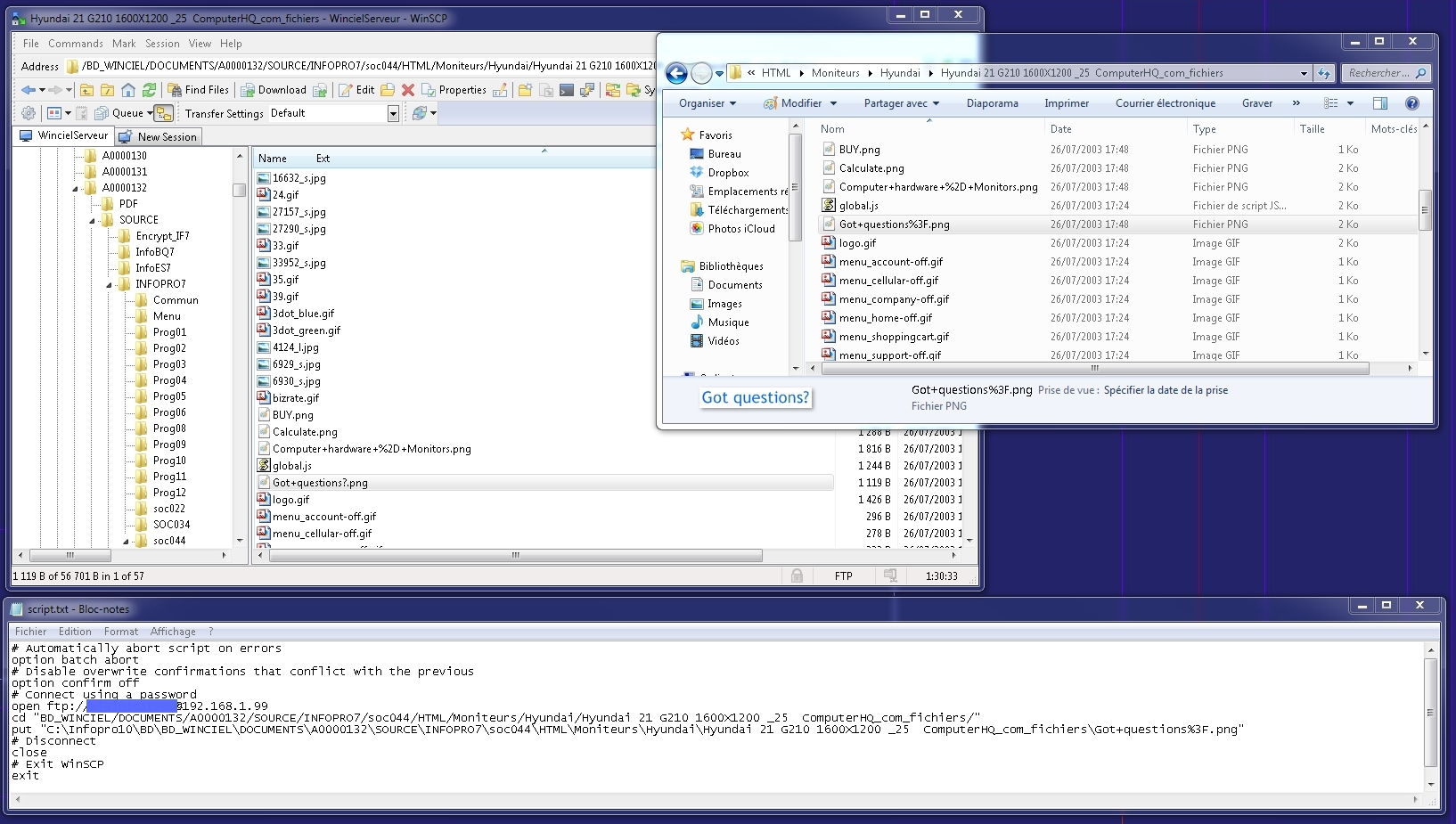 So, wincsp tranfers the file on the serveur (linux debian 6).