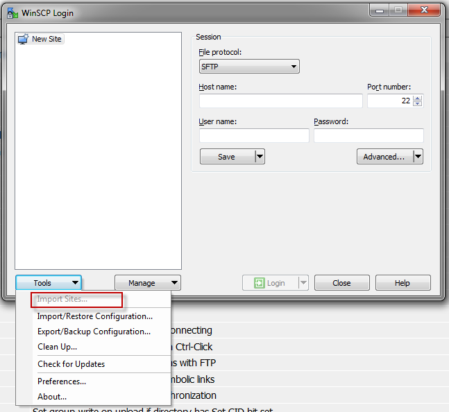 Import Sites grayed out