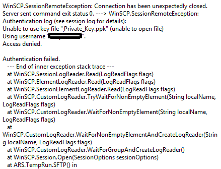 . 2015-10-28 11:55:21.048 Reading private key file "C:\Users\Nick\OneDrive\Documents\Business\Clients\CTU\ARS Development\ARS\ARS\Private_Key.ppk"
