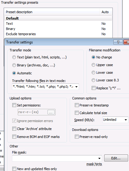 NOTE: I have turned off temporary file renaming from the client to prevent uploading to a temporary filename and then renaming at the end of the transfer. That was a problem in the past because the FTS server does not allow file renaming.