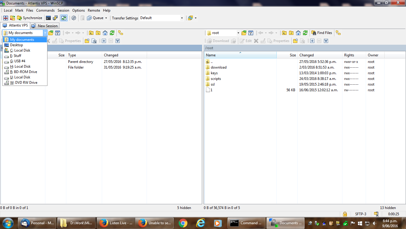 Description: WinSCP screenshot of drive select dropdown