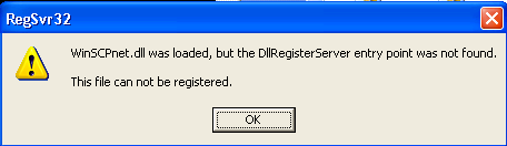 creates an error Microsoft.NET\Framework\v2.0.50727\RegAsm.exe is not a valid Win32 Application. On running thte command regsvr32 WinSCPnet.dll creates the error DllRegisterServer entry point was not found. This was done on Windows XP machine. Any help please.