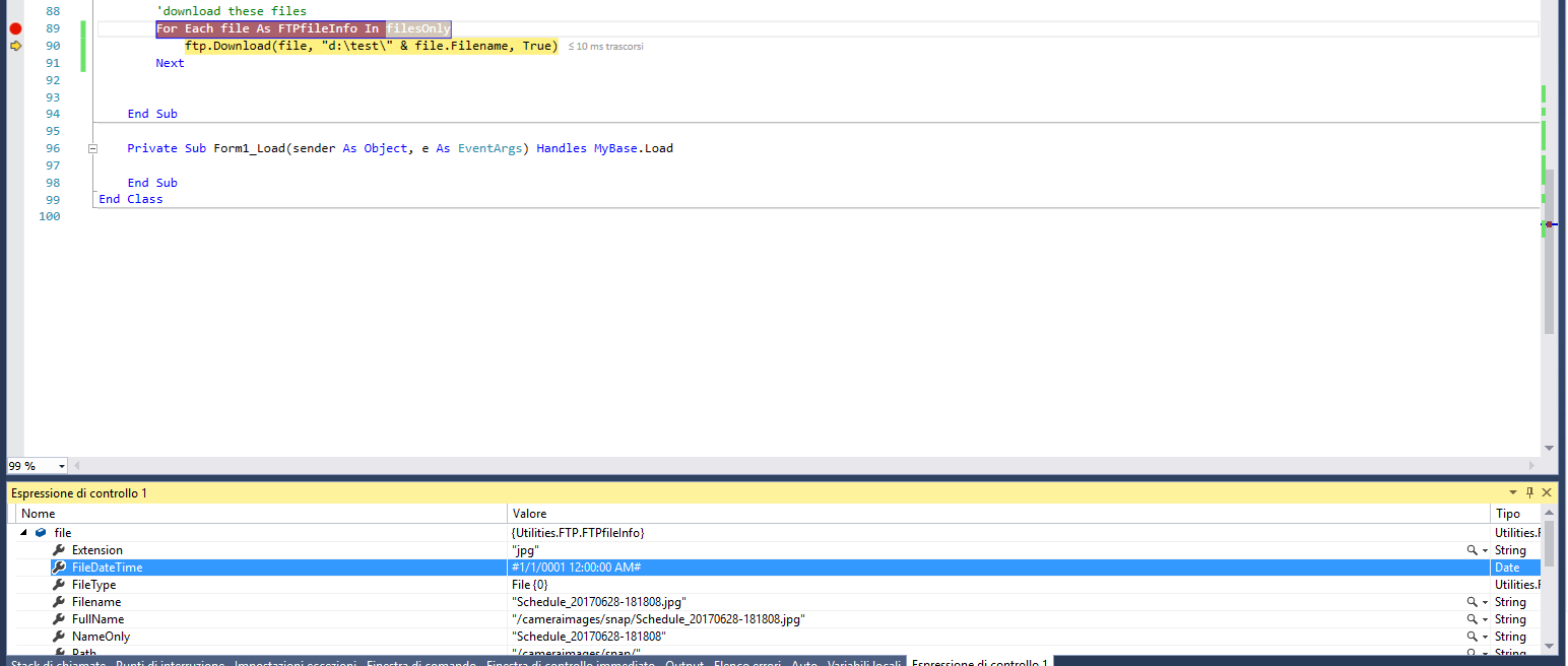 In this case in the FTPFileInfo, the date/time it's wrong (seems it does not reconise at all) and display date :1/1/0001