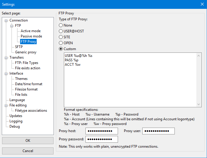 can't get our proxy to work with winscp altough filezilla supports this just fine can you please check this: