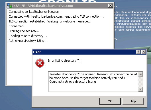 We are using Winscp 5.5.3 version. We are trying to connect one of the share through FTP.The port 21 is open but still we are not able to access the share. We are using TLS Explicit encryption. Could you please help us to solve the issue. attached is the error screen shot.