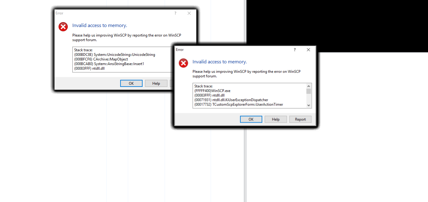 Invalid access to memory - TCustomScpExplorerForm::UserActionTimer