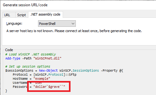 Special characters in SFTP password (PowerShell)