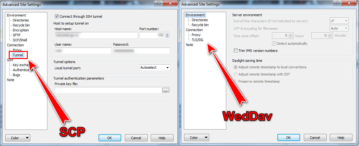 In case you are working in a protected network with no connection to a needed WebDav server you can still access this server using the tunnel feature that is only present in SCP and SFTP connection but not present in the other one (FTP, WebDav...).