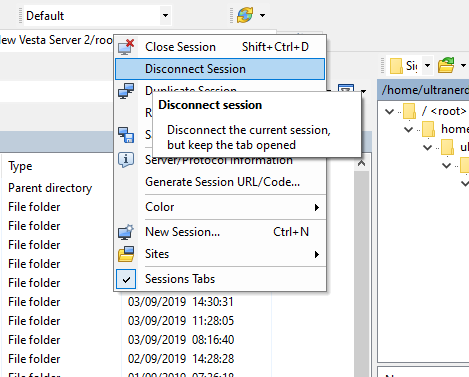 Since the latest update, there seems to be a "Disconnect Session" option when right clicking on a tab. Now, this is a cool feature BUT I keep hitting it by accident! "Duplicate Session" is right next to it - and that used to be in the 2nd position on the menu. So I'm right clicking, then pressing "Disconnect Session" (instead of Duplicate).