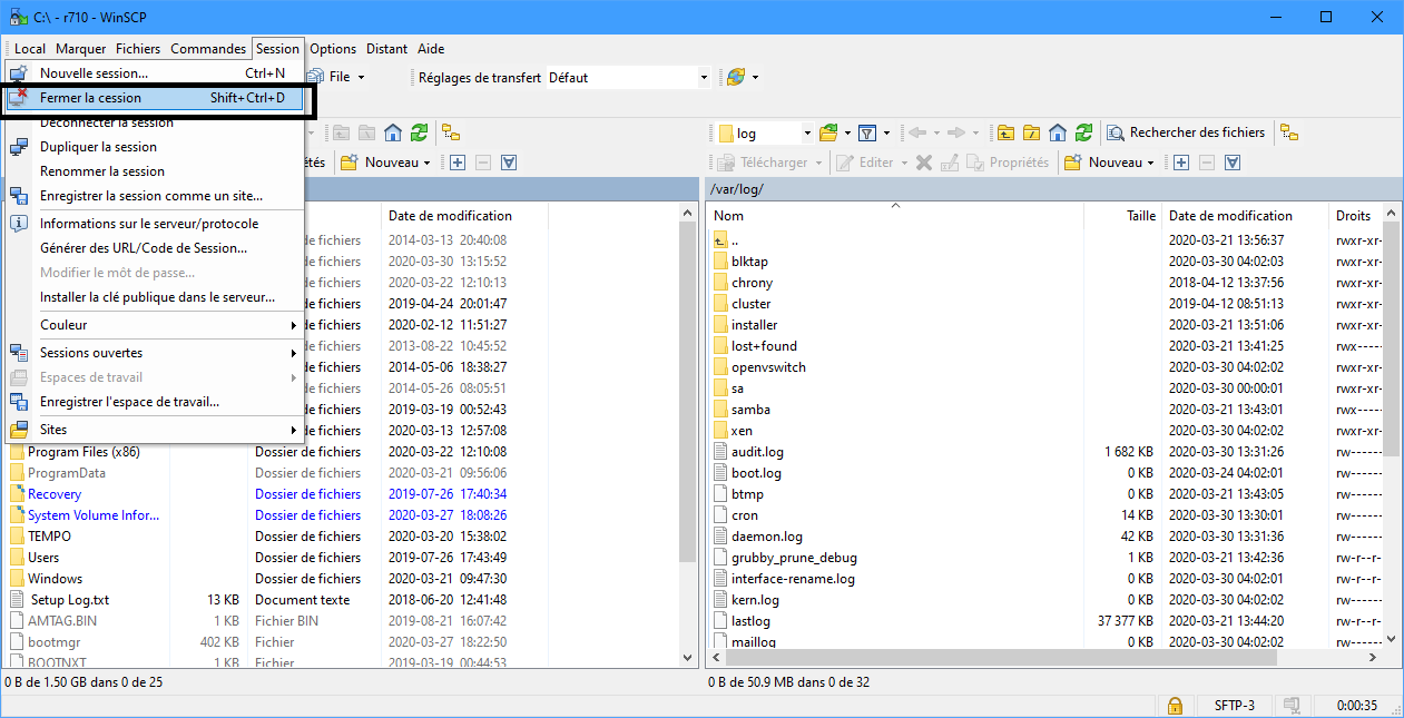 In Session Menu, "Fermer la session" is labeled "Fermer la cession"