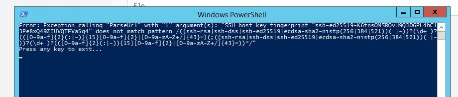 Error: Exception calling "ParseUrl" with "1" argument(s): "SSH host key fingerprint "ssh-ed25519-K6tnsOMSROvH9QJD6PL4hC1