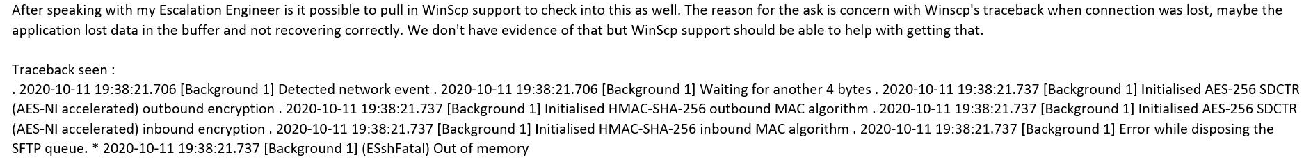 - for some of the users, the network connection drops several times during the transfer but WinSCP recovers and continues the transfer from where it left.